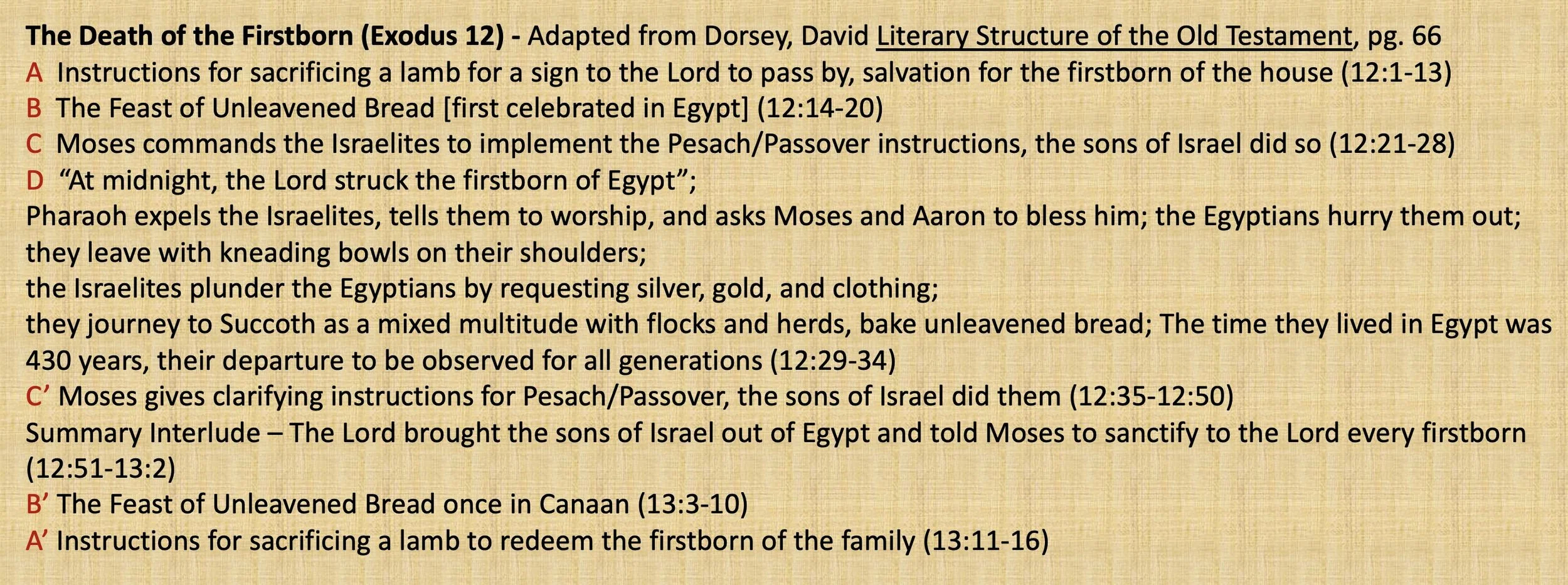 We’ve spent quite a bit of time to this point considering chiasms in the stories of major characters. There appears to be one here at the beginning of Exodus too. Are they really useful? Do they even exist? Or have we been imagining and assigning meaning to structures that just aren’t there?
